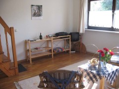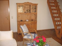 Die Treppe führt ins oben gelegene Schlafzimmer. | |